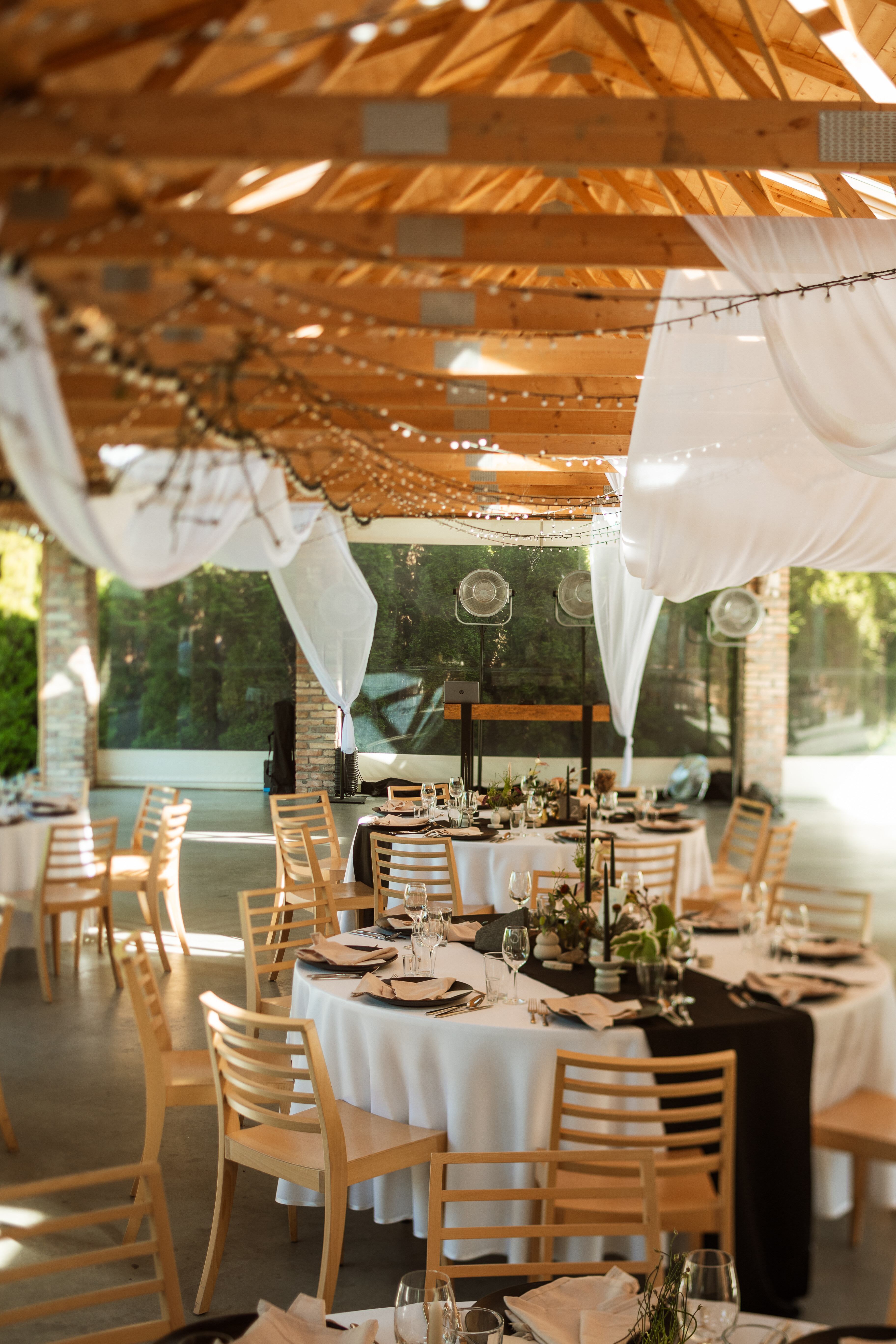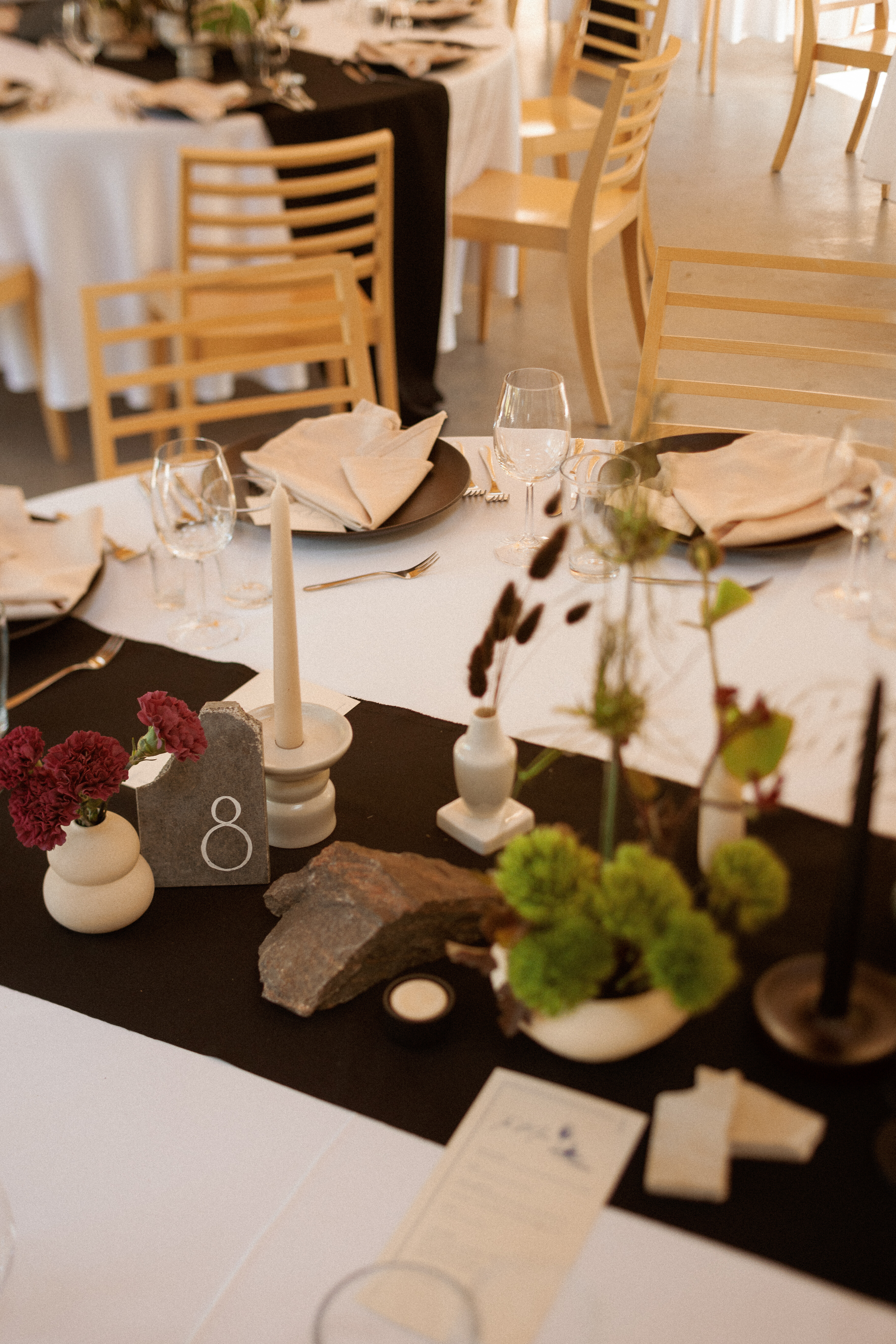 Czarne bieżniki ze streczu. Idealne na stoły o średnicy 180 cm.