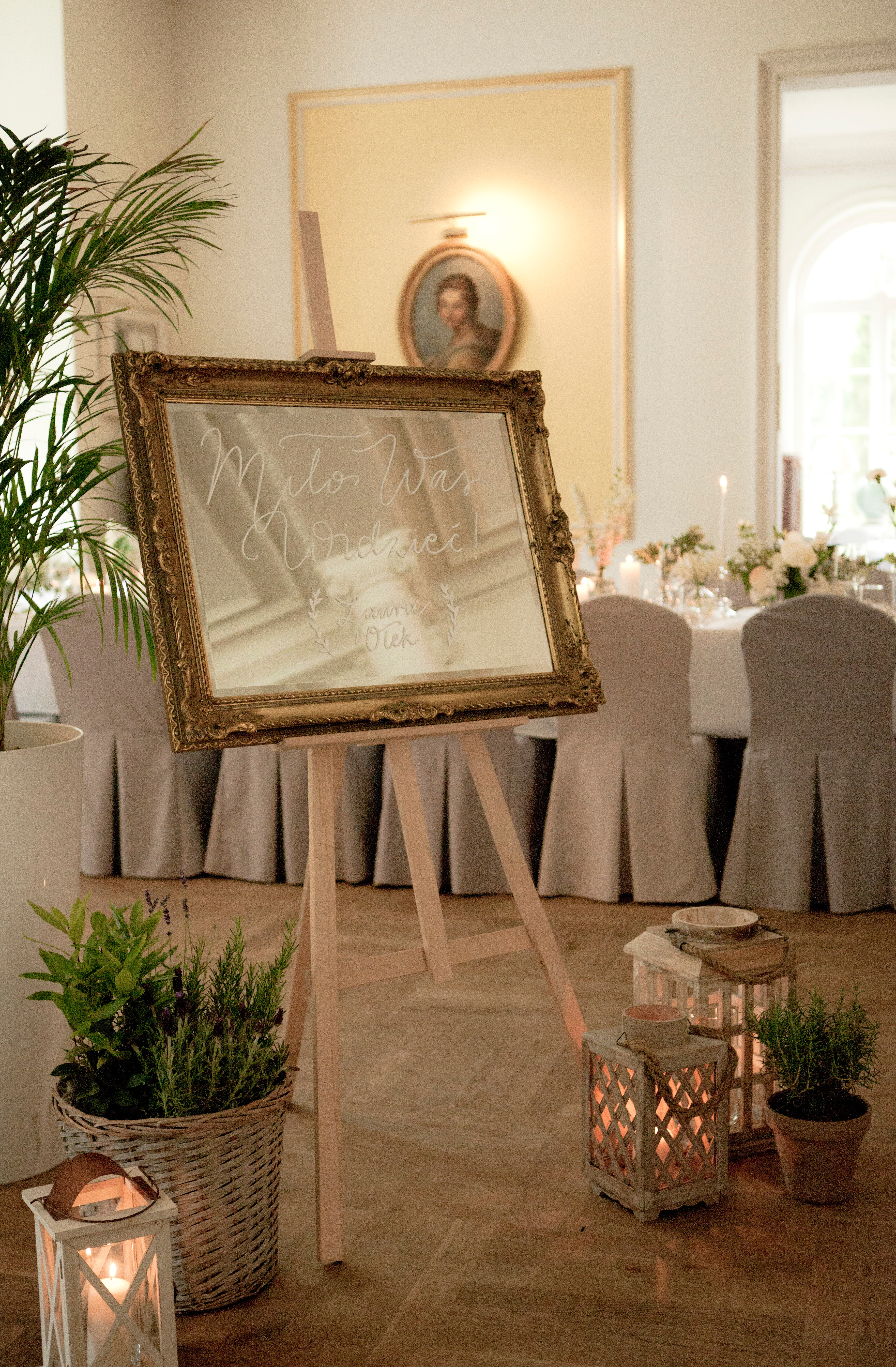 Lustro w złotej ramie