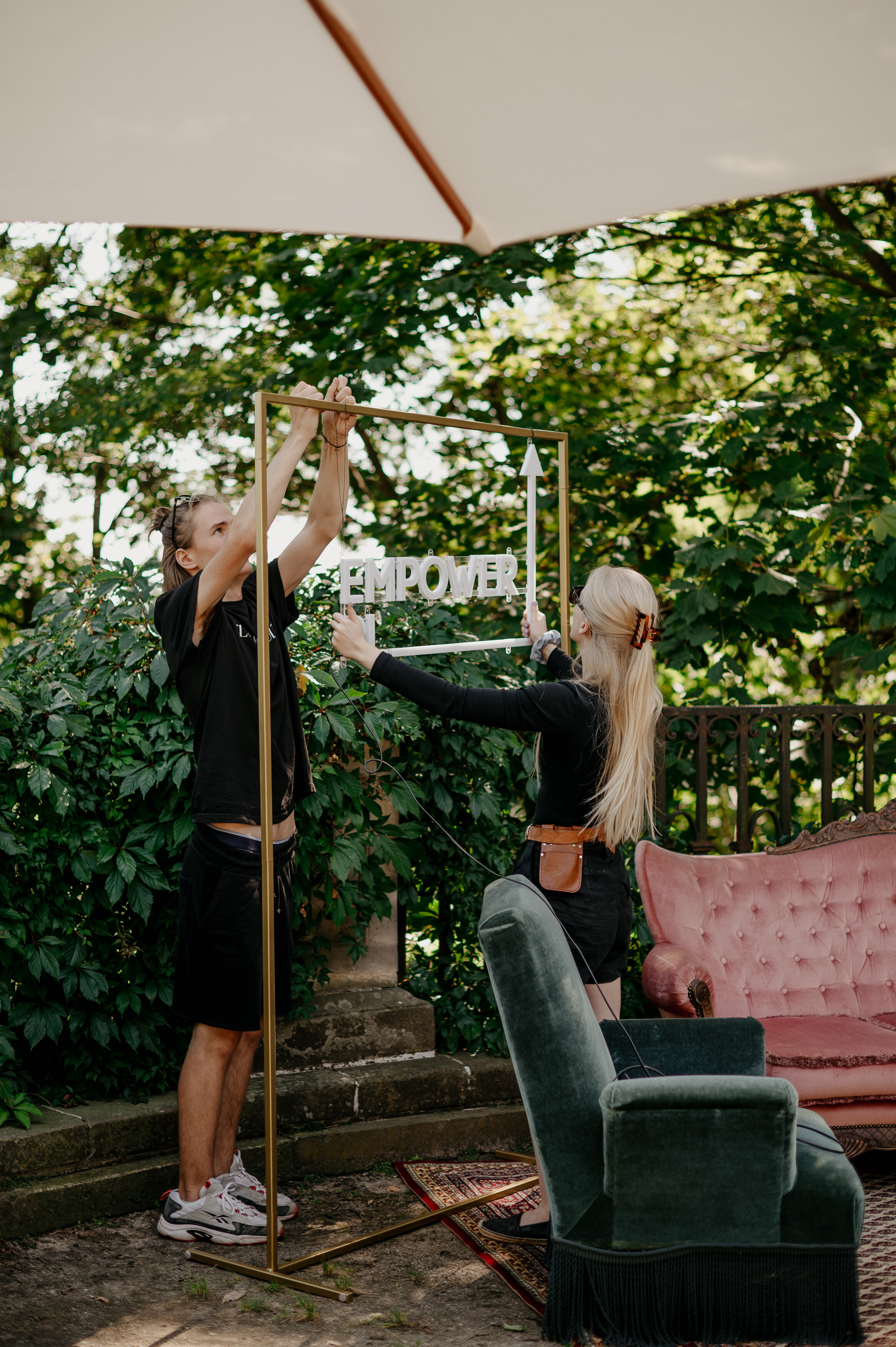 Złoty stelaż do powieszenia tablicy