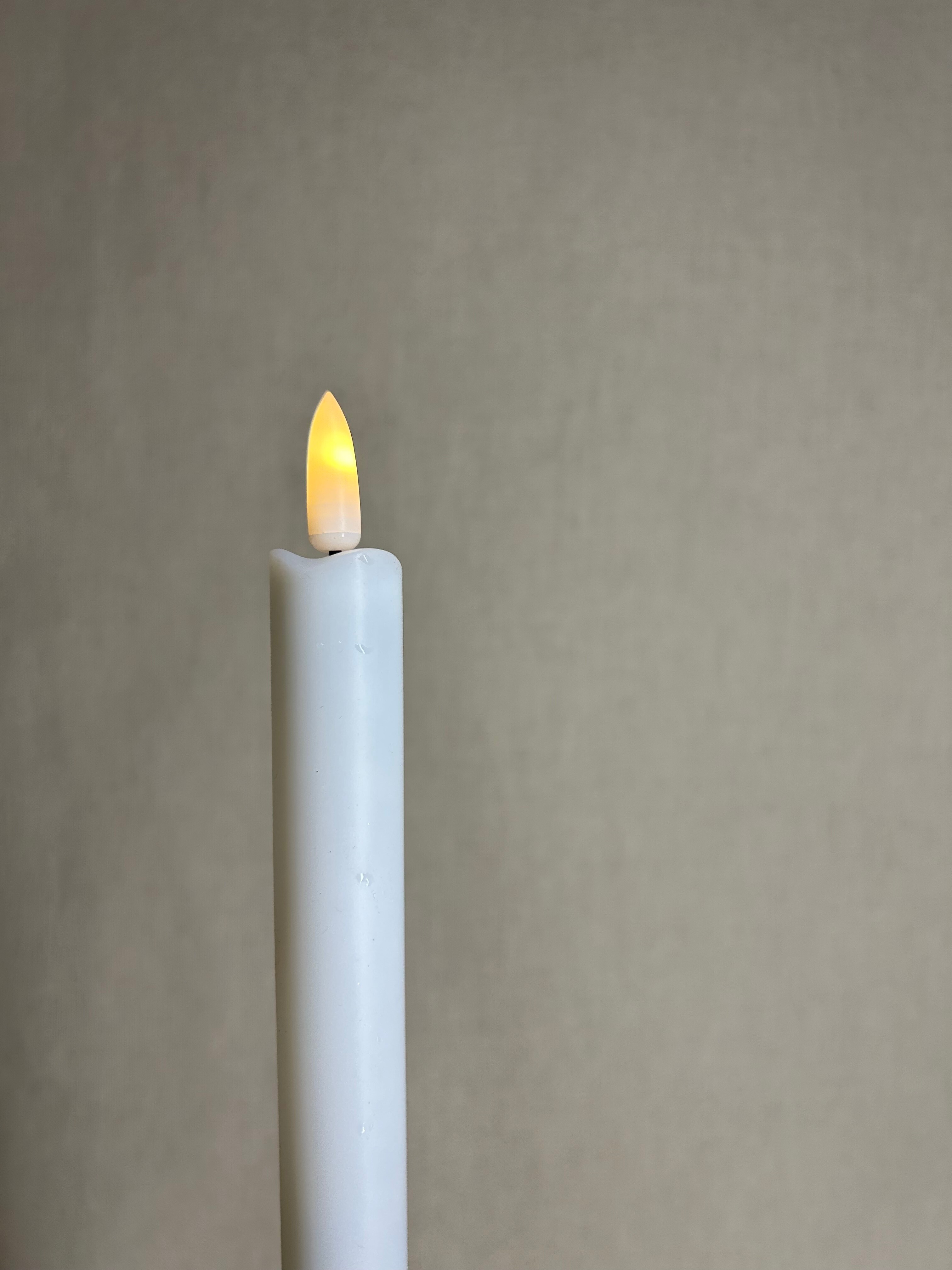Świece ledowe na baterie. Uruchamiane za pomocą pilota (w zestawie) . Możliwy płomień stały lub lekko ruchomy.